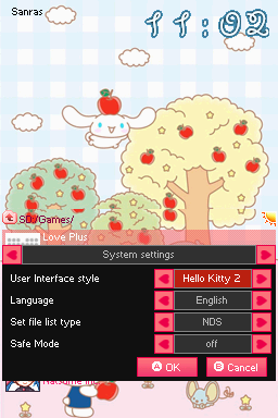 Hello Kitty 2. Copy this folder to/__rpg/ui(or/__aio/uifor AKAIO) on your flashcart’s SD card. -