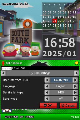 SouthPark. Copy this folder to/__rpg/ui(or/__aio/uifor AKAIO) on your flashcart’s SD card. -
