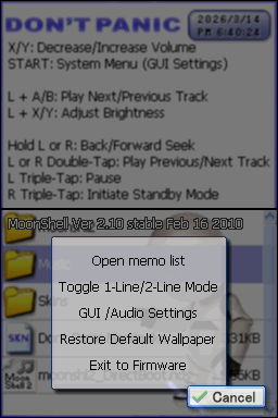 Place the SD card back into your cart, and launch Moonshell 2.