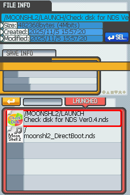 Place the SD card back into your cart, and launch Moonshell 2.