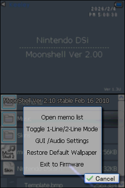 Wallpaper.bmpas your Moonshell 2 theme to fix the breakage. CopyWallpaper.bmpto your SD card’sSkinsfolder, then open the bmp file in Moonshell 2 and set it as your wallpaper.