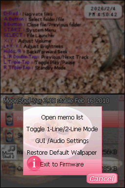 Place the SD card back into your cart, and launch Moonshell 2.